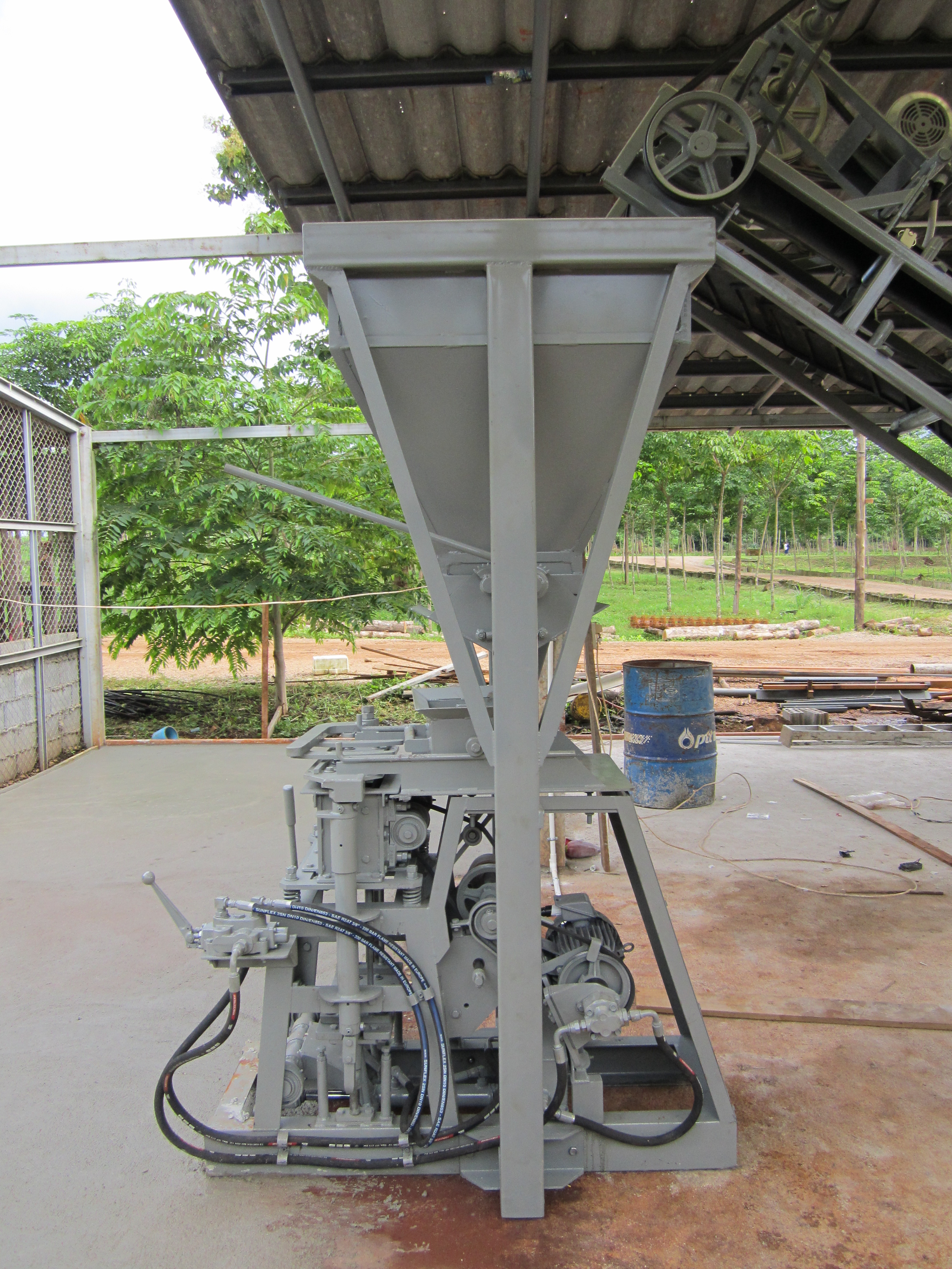 ชุดเครื่องผลิตอิฐบล็อกระบบไฮดรอลิค 2 ก้อน กำลังการผลิตประมาณ 315 ก้อน/ชั่วโมงหรือ 2,500 ก้อน/วัน